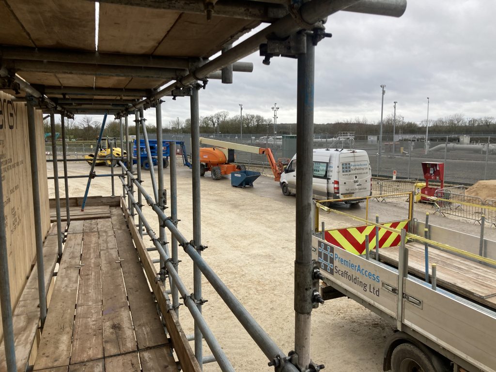 Independent Access Scaffold to provide safe deconstruction of Timber packaging around Gas Compressor,